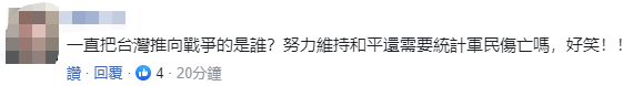 針對臺軍醫(yī)局此舉,有島內(nèi)網(wǎng)友表示,“一直把臺灣推向戰(zhàn)爭的是誰?努力維持和平還需要統(tǒng)計軍民傷亡嗎,好笑!!”“支持和平統(tǒng)一!”