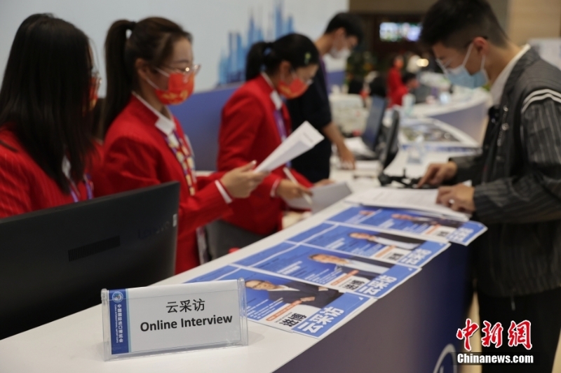 11月4日,上海,第四屆中國國際進(jìn)口博覽會新聞中心正式開放運(yùn)營。據(jù)悉,新聞中心將為記者們繼續(xù)提供云采訪室,增加了重量級嘉賓與中外記者“云”對話。 中新社記者 楊可佳 攝