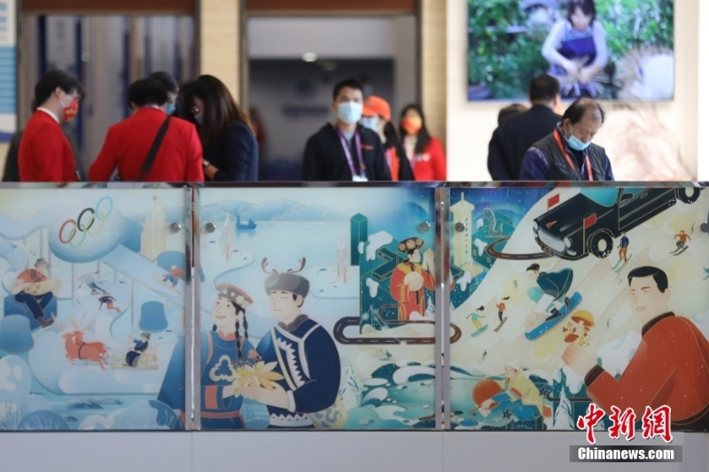 11月4日,上海,第四屆中國國際進(jìn)口博覽會新聞中心正式開放運(yùn)營。圖為新聞中心內(nèi)的卡通畫。 中新社記者 蔣啟明 攝