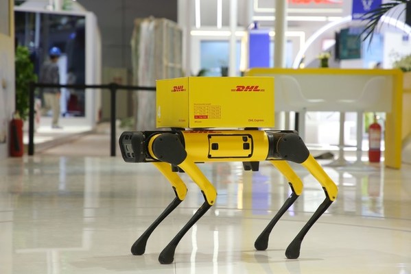 位于展區(qū)中心的是一臺(tái)處于試驗(yàn)階段的四足機(jī)器人,將在DHL快遞展臺(tái)向觀眾派發(fā)紀(jì)念品。該機(jī)器人具有優(yōu)良的運(yùn)動(dòng)性能和多地形適應(yīng)性,應(yīng)用前景廣泛,包括可用于非結(jié)構(gòu)化環(huán)境中最后一公里的物流配送等。