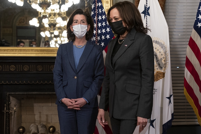 雷蒙多(左)與美國副總統(tǒng)哈里斯(右)