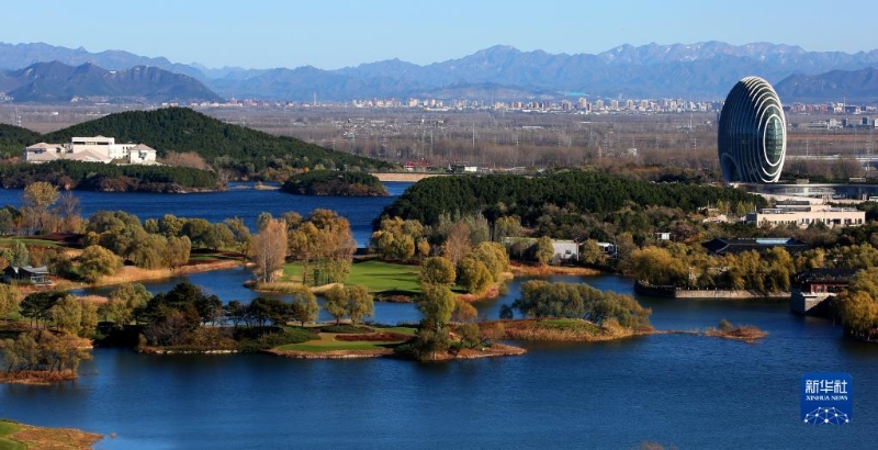 11月10日拍攝的北京懷柔雁棲湖景色。