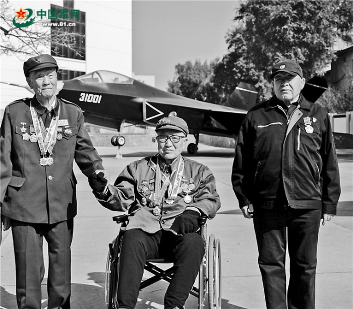 今年10月25日,是中國人民志愿軍抗美援朝出國作戰(zhàn)71周年紀(jì)念日。沈陽飛機工業(yè)(集團)有限公司(以下簡稱沈飛)航空博覽園迎來了3位特殊的客人。他們是志愿軍老兵金鐘元、馬英和曾擔(dān)任空軍駐國營112廠(沈飛前身)軍代表劉奇。胸前一枚枚熠熠生輝的軍功章,見證著他們的光榮歲月?! ?/p>