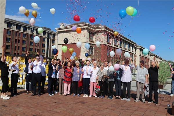 椿萱茂·和園長者社區(qū)露臺(tái)長輩集體放飛夢(mèng)想氣球