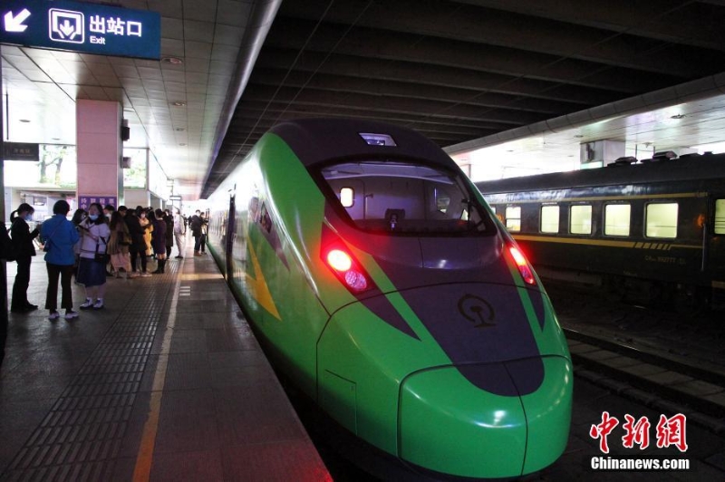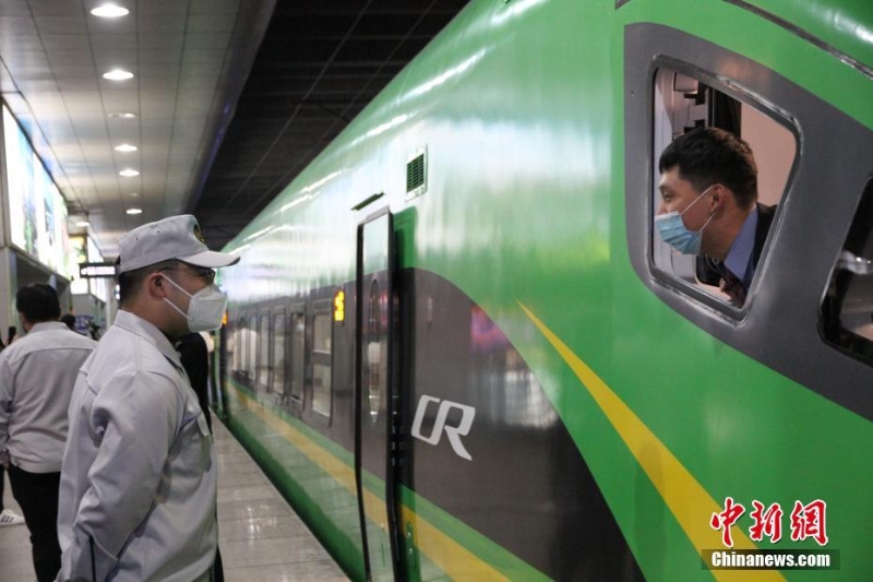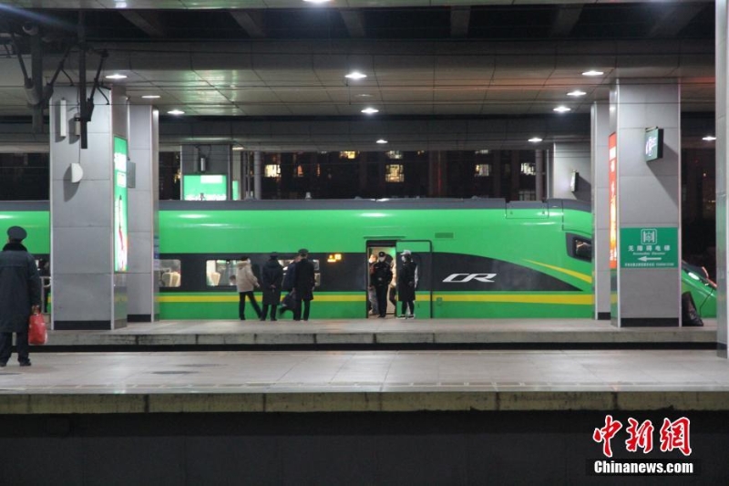 11月12日,山東濟南,山東省內始發(fā)的“綠巨人”動車組發(fā)車。此次投入運營的動力集中復興號動車組是復興號“家族”的重要組成部分,最高運行時速160公里,適用于普速電氣化鐵路,是普速列車的迭代升級產(chǎn)品,其平面布置、內部裝飾、人機界面等方面參照既有復興號動車組進行優(yōu)化設計,車身為國槐綠底色,采用流線型外形,也被稱為“綠巨人”。 中新社記者 呂妍 攝