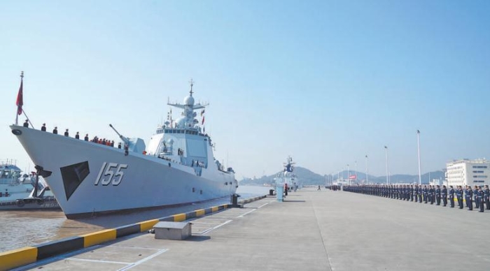 上圖:11月15日,中國海軍第38批護航編隊返回浙江舟山某軍港。 新華社發(fā)