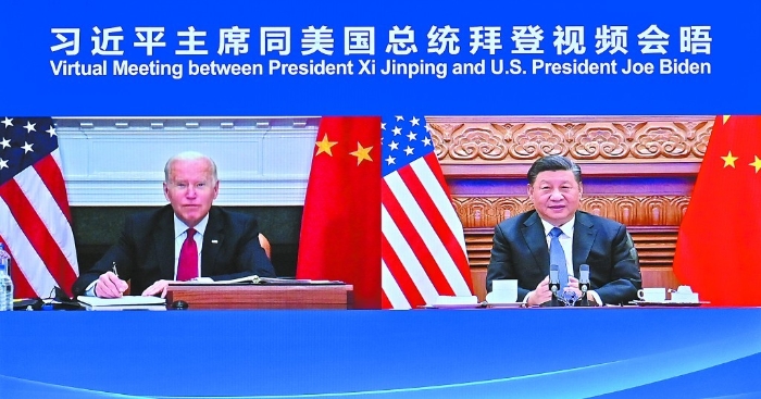16日上午,國家主席習近平在北京同美國總統(tǒng)拜登舉行視頻會晤。