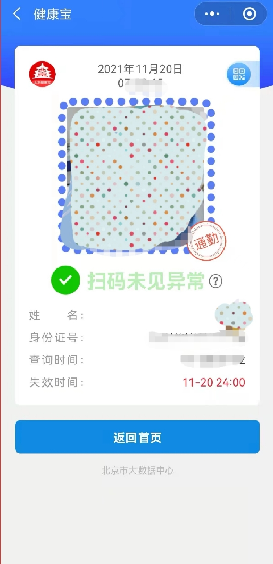 11月20日,“北京健康寶”發(fā)布新版本,針對(duì)環(huán)京地區(qū)通勤人群需求,上線了“通勤”綠碼標(biāo)識(shí)。持有“通勤”綠碼標(biāo)識(shí)的進(jìn)(返)京人員,可向鐵路、公路檢查站工作人員出示,與紙質(zhì)核酸陰性證明同等效力。