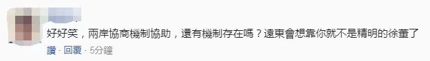 還有人稱,“好好笑,兩岸協(xié)商機制協(xié)助,還有機制存在嗎?遠東會想靠你就不是精明的徐董(遠東集團董事長徐旭東)了?!?/p>