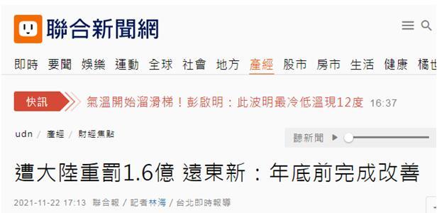 【環(huán)球網(wǎng)報(bào)道 記者尹艷輝】臺(tái)灣遠(yuǎn)東集團(tuán)在大陸投資企業(yè)因違法違規(guī)被依法查處。據(jù)“中央社”、《聯(lián)合報(bào)》等臺(tái)媒消息,遠(yuǎn)東集團(tuán)旗下化纖紡織企業(yè)遠(yuǎn)東新世紀(jì)股份有限公司(以下簡(jiǎn)稱遠(yuǎn)東新)今天(22日)表示,大陸執(zhí)法部門發(fā)現(xiàn)遠(yuǎn)東新在環(huán)保、消防安全等領(lǐng)域部分項(xiàng)目不符規(guī)定,開(kāi)罰人民幣3650萬(wàn)元,遠(yuǎn)東新將虛心面對(duì),防止類似情事再發(fā)生。