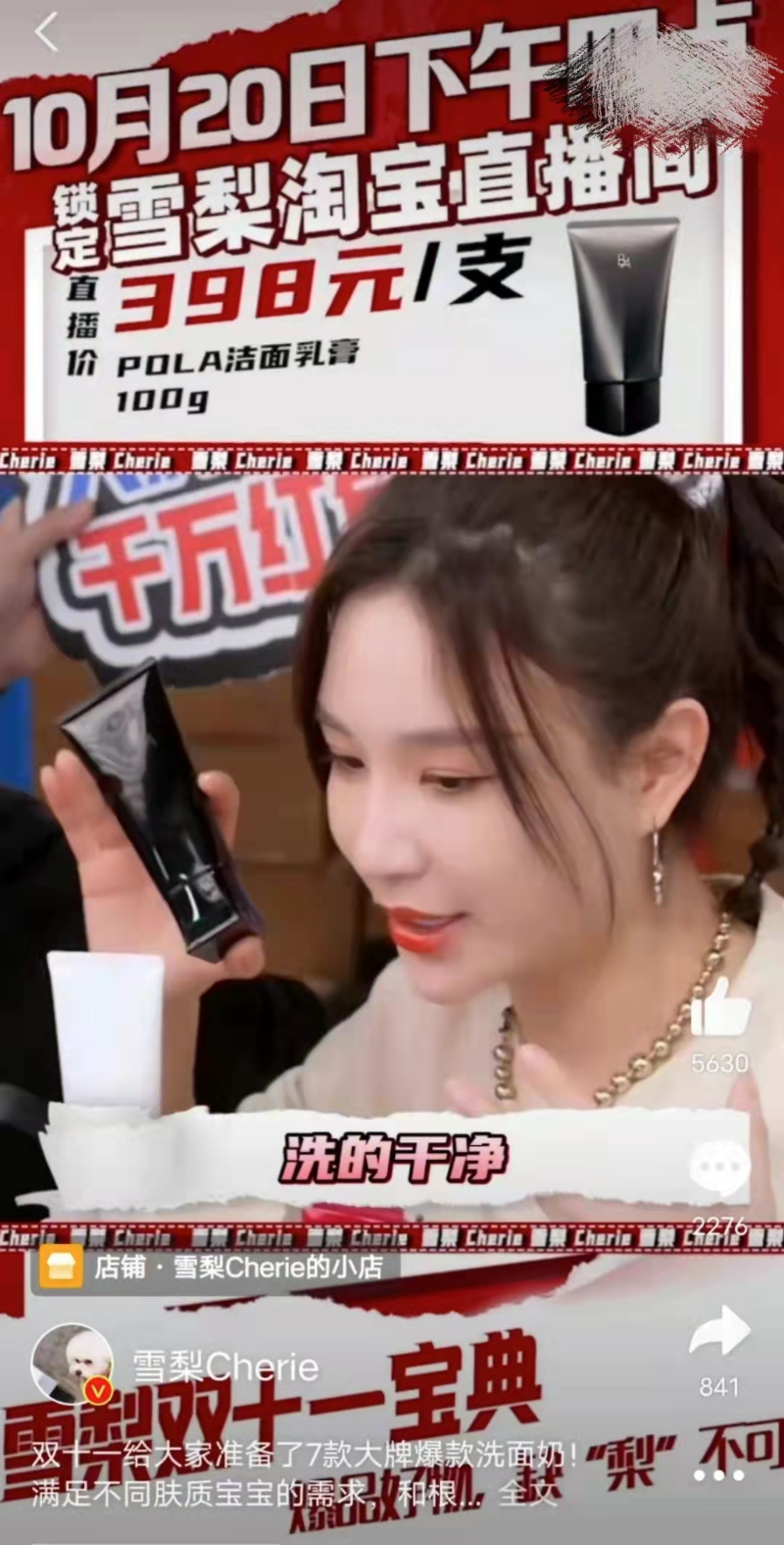 ▲網(wǎng)絡主播雪梨(朱宸慧)正在直播。圖/雪梨Cherie微博截圖