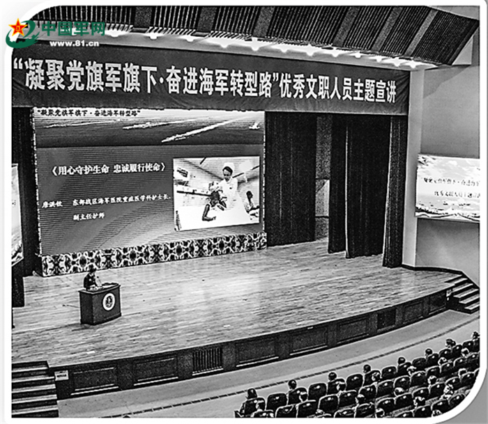 海軍軍醫(yī)大學(xué)組織“凝聚黨旗軍旗下·奮進(jìn)海軍轉(zhuǎn)型路”優(yōu)秀文職人員主題宣講活動(dòng)現(xiàn)場(chǎng)。 王澤鋒攝
