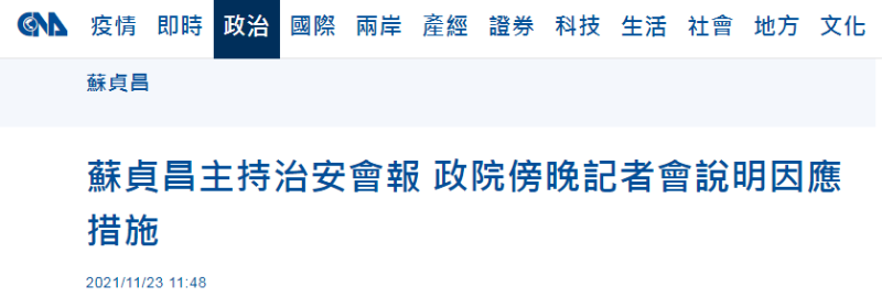 據(jù)報(bào)道,島內(nèi)近日發(fā)生多起治安事件,包括臺(tái)中、桃園超市店員被攻擊事件,臺(tái)中兩起球棒打人事件以及最近的新北槍擊案,蘇貞昌今天下午召集臺(tái)“行政院”發(fā)言人羅秉成、“