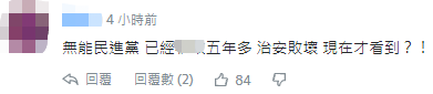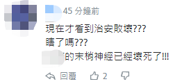 有網(wǎng)友發(fā)表相同觀點(diǎn),“現(xiàn)在才看到治安敗壞?瞎了嗎?‘政府’的末梢神經(jīng)已經(jīng)壞死了!”↓