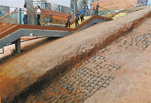 觀眾在長(zhǎng)沙銅官窯譚家坡遺跡館參觀。湖南日?qǐng)?bào)全媒體記者 徐行 攝
