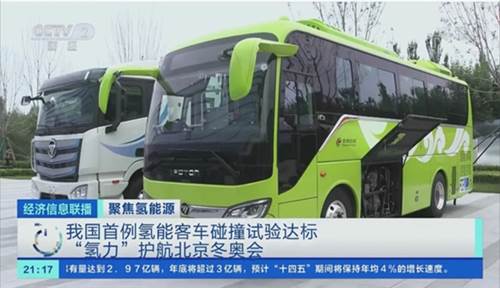 央視財(cái)經(jīng)頻道《經(jīng)濟(jì)信息聯(lián)播》報(bào)道福田歐輝70兆帕氫燃料客車碰撞試驗(yàn)