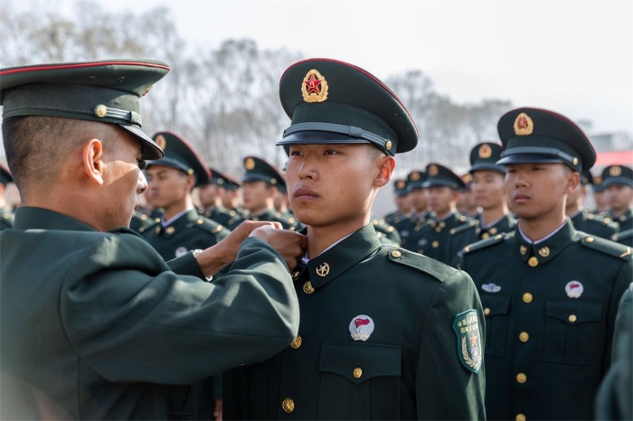 經(jīng)歷了兩個(gè)多月的拼搏歷練,新兵同志們“過五關(guān)斬六將”,汗水的咸鑄就金色的銜,迎來了他們軍旅生涯最莊重神圣的時(shí)刻——授銜。(文稿:侯合松 趙以良 攝影:楊海鵬)