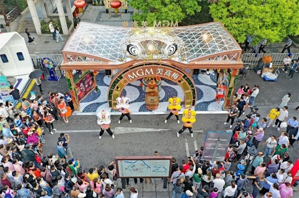 美高梅為活動(dòng)現(xiàn)場帶來創(chuàng)新的醒獅表演,彰顯濃郁的嶺南特色。