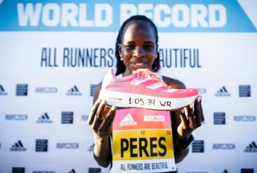 (上圖)佩雷斯·杰普徹徹穿著ADIZERO ADIOS PRO創(chuàng)造純女子半馬世界紀(jì)錄