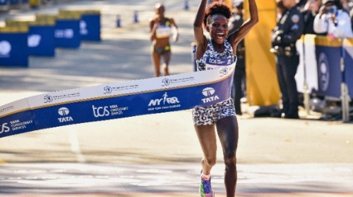 (下圖)佩雷斯·杰普徹徹穿著ADIZERO ADIOS PRO斬獲2021紐約馬拉松女子冠軍