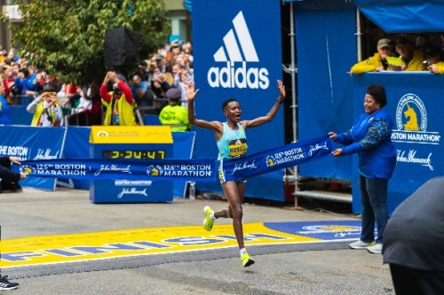 (下圖)戴安娜·基普約蓋穿著ADIZERO ADIOS PRO斬獲2021波士頓馬拉松女子冠軍