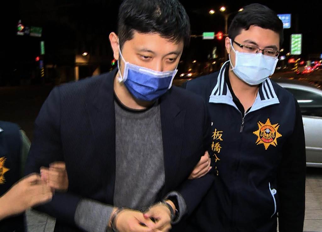 林秉樞雙手被上手銬帶回板橋分局偵查隊(duì),律師分析他是家暴累犯,這次恐需入獄。(陳君瑋攝)