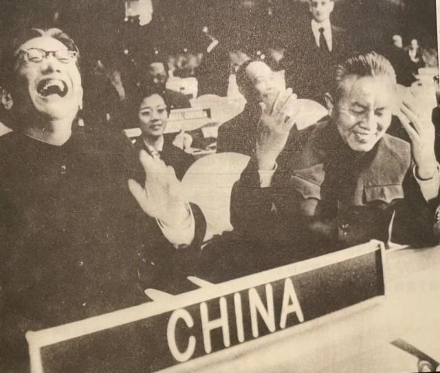 中國代表團(tuán)團(tuán)長、時任外交部副部長喬冠華仰天開懷大笑,這個瞬間被相機(jī)捕捉,成為了中國上世紀(jì)70年代外交成就的定格。