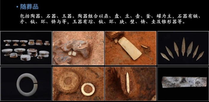 “墓葬區(qū)共發(fā)掘墓葬66座,可見一次葬、二次葬和遷出葬現(xiàn)象,少數(shù)墓葬保存了木質(zhì)葬具殘痕與人骨遺存,這在嶺南同類遺址中極為罕見?!睆V東省文物考古研究所研究員劉鎖強在會上介紹,隨葬陶器組合以鼎、盤、豆、壺、罐為主,磨制石器以鏃、錛為主,玉器有琮、鉞、環(huán)、玦、璧、錛、錐形器及圭形器等,以玉鉞為最大宗。