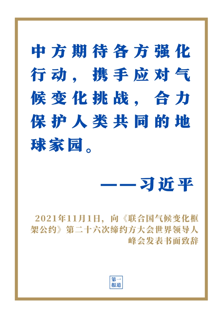 ——“應(yīng)對氣候變化等全球性挑戰(zhàn),多邊主義是良方?!痹凇堵?lián)合國氣候變化框架公約》第二十六次締約方大會世界領(lǐng)導(dǎo)人峰會上,習近平主席強調(diào)“維護多邊共識”。
