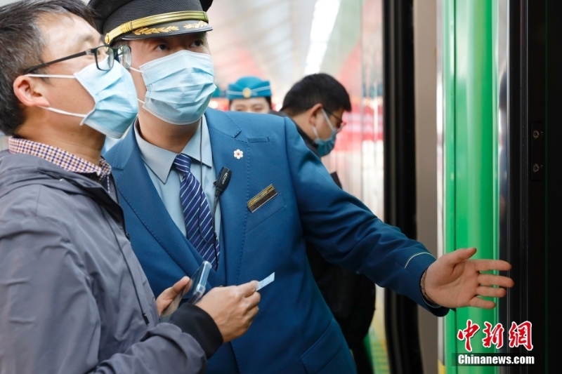 圖為列車員引導(dǎo)乘客上車。 中新社記者 李嘉嫻 攝