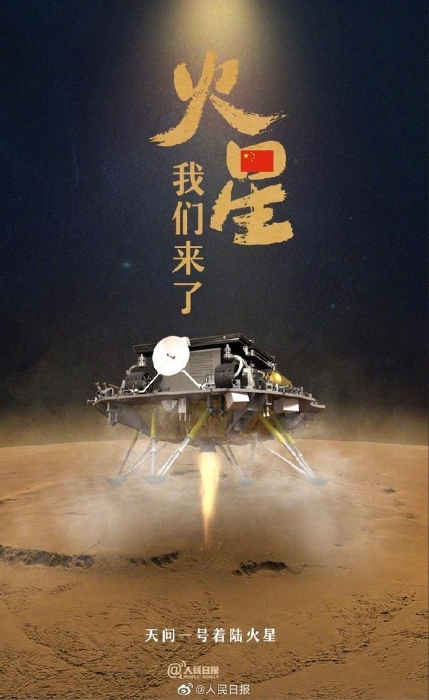 記者從國家航天局獲悉,科研團(tuán)隊根據(jù)“祝融號”火星車發(fā)回遙測信號確認(rèn),5月15日7時18分,天問一號著陸巡視器成功著陸于火星烏托邦平原南部預(yù)選著陸區(qū),我國首次火星探測任務(wù)著陸火星取得圓滿成功。