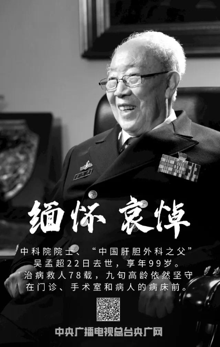 央廣網(wǎng)北京5月23日消息(記者肖源)據(jù)中央廣播電視總臺中國之聲《新聞縱橫》報道,22日下午,中國共產(chǎn)黨優(yōu)秀黨員,中國科學(xué)院院士,國家最高科學(xué)技術(shù)獎獲得者,原第二軍醫(yī)大學(xué)副校長吳孟超同志,因病在上海逝世,享年99歲。吳孟超同志是我國肝臟外科的開拓者和主要創(chuàng)始人、國際肝膽外科的著名專家,被譽為“中國肝臟外科之父”。