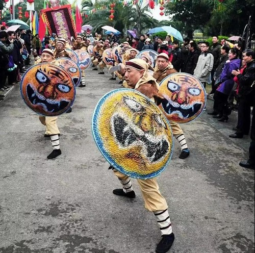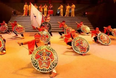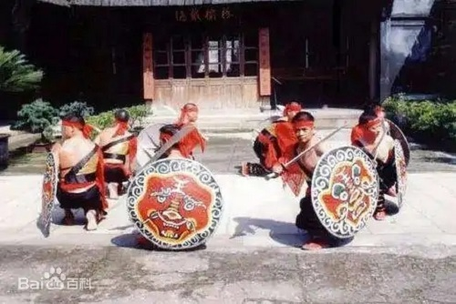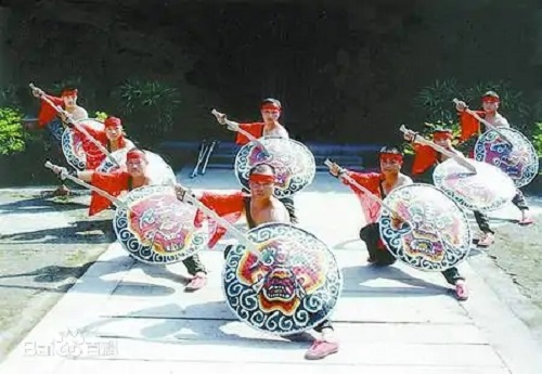 藤牌陣原為古戰(zhàn)場克敵制勝之陣法,經(jīng)演變進(jìn)化,現(xiàn)已成為防身健體的競技形式,以及趕集、廟會民間藝術(shù)助興表演活動。其招式表演融入古、今舞蹈動作,優(yōu)美流暢,藝術(shù)價值高。