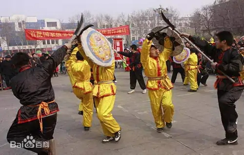 沙河藤牌陣,是流行于河北省沙河市的傳統(tǒng)體育活動。是中國古代戰(zhàn)場實(shí)戰(zhàn)技擊項(xiàng)目,僅存于河北省沙河市十里鋪村,當(dāng)?shù)厝朔Q之為“打藤牌”。沙河藤牌陣,是流行于河北省沙河市的傳統(tǒng)體育活動。是中國古代戰(zhàn)場實(shí)戰(zhàn)技擊項(xiàng)目,僅存于河北省沙河市十里鋪村,當(dāng)?shù)厝朔Q之為“打藤牌”。沙河藤牌陣歷史悠久,源自商代,真正傳入邢臺一帶是在明代末年。表演陣法時,攻守方每隊最少4人,藤牌兵左手執(zhí)藤牌,右手執(zhí)短刀,與4名攥三齒叉、大片刀、長矛或木棍者按陣法輪番打斗。