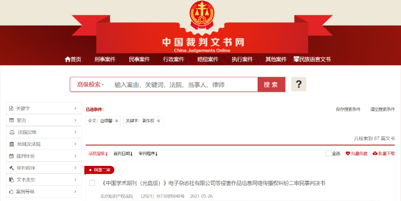 ▲中南財(cái)經(jīng)政法大學(xué)退休教授趙德馨對中國知網(wǎng)擅自收錄他的100多篇論文打起了官司且全部勝訴。圖/中國裁判文書網(wǎng)截圖
