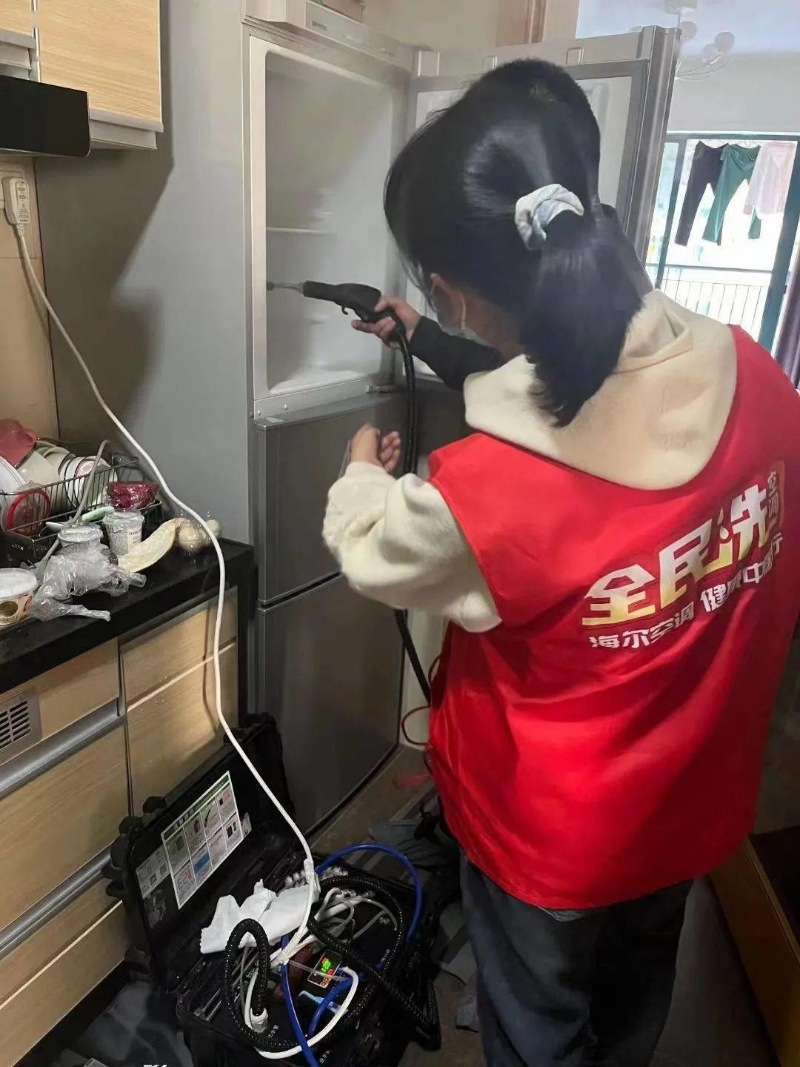 海爾工作人員在清洗冰箱。信息時報記者 袁嬋 攝