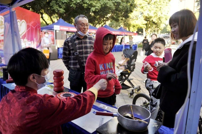 除了眾多的便民服務(wù),活動現(xiàn)場還有小丑派發(fā)氣球、音樂抱抱大熊貓等豐富表演,市民逛累了,可以參與現(xiàn)場DIY個性環(huán)保袋親子互動,再領(lǐng)個甜蜜蜜的糖畫。一系列精彩活動吸引了眾多小朋友圍觀,領(lǐng)氣球、糖畫的隊伍更是排起了長龍,小朋友都在井然有序地等待。