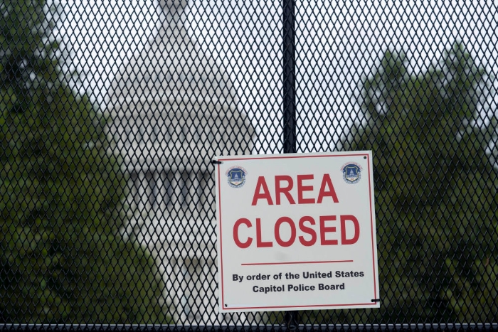 這是2021年9月17日在美國首都華盛頓透過隔離圍欄拍攝的國會大廈。美國華盛頓的國會周邊設(shè)置起金屬隔離圍欄,用于防范突發(fā)事件。(新華社記者劉杰攝)