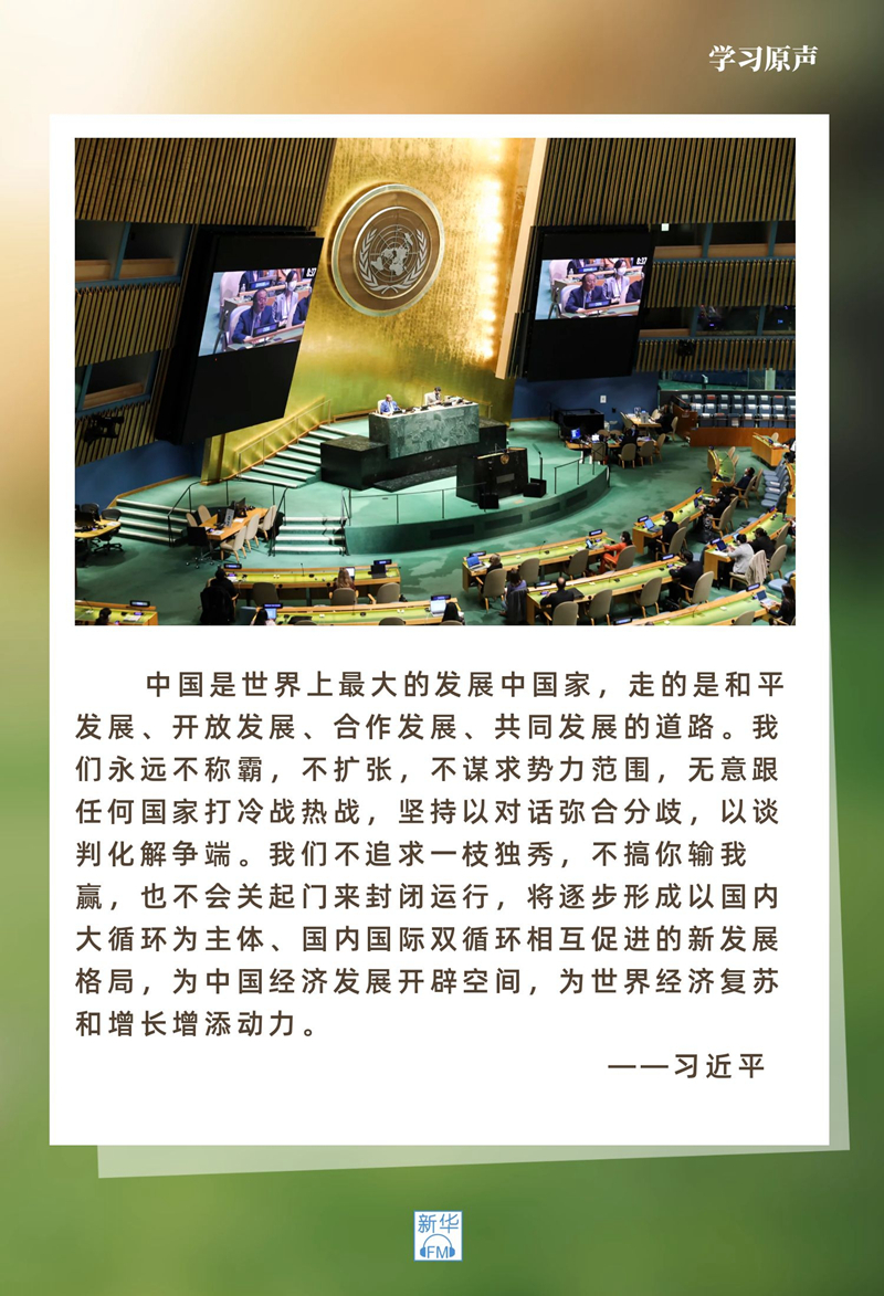 大道之行,天下為公。和平與發(fā)展是時(shí)代主題,也是不可抗拒的歷史潮流。中國將堅(jiān)定站在歷史正確的一邊,站在人類進(jìn)步的一邊,同世界各國攜手并肩,向著構(gòu)建人類命運(yùn)共同體光明未來不斷前進(jìn)。