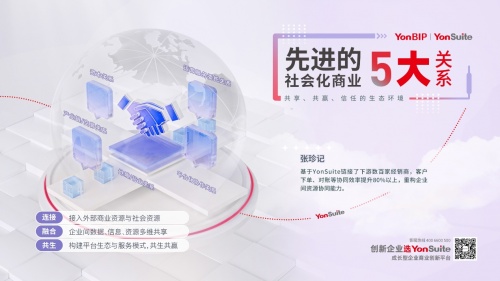 以場(chǎng)景化應(yīng)用為出發(fā)點(diǎn),用友YonSuite將助力成長(zhǎng)企業(yè)發(fā)展的高階重點(diǎn),放在使能企業(yè)與社會(huì)化業(yè)務(wù)的協(xié)同連接創(chuàng)新,這也是場(chǎng)景化應(yīng)用更為先進(jìn)的領(lǐng)域之一。聚焦社會(huì)化場(chǎng)景,包括企業(yè)上下游交易協(xié)同、稅企連接與協(xié)同、銀企連接與協(xié)同、企業(yè)社交化協(xié)同、社會(huì)資源連接。通過(guò)借助用友YonSuite不斷地解耦、重構(gòu)、連接和組裝社會(huì)化資源,可以幫助成長(zhǎng)型企業(yè)在上下游、金融財(cái)稅、伙伴與客戶之間,構(gòu)建起資源協(xié)同聯(lián)動(dòng)大平臺(tái),幫助企業(yè)快速建立與形成社會(huì)化協(xié)同能力,敏捷適應(yīng)業(yè)務(wù)的變化,快速滿足業(yè)務(wù)發(fā)展所需的社會(huì)資源。