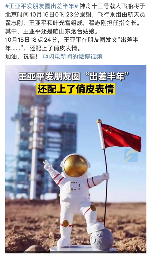 10月16日凌晨,神舟十三號(hào)載人飛船伴月升空,航天員王亞平一句“出差半年”問鼎熱搜榜,刷爆朋友圈?!靶绿粘霾钊私M”即將創(chuàng)造我國載人航天在軌駐留時(shí)長新記錄,致敬中國航天人!這舉世矚目的為國出征,也讓人類偉大的太空探索夢想在我們心中再一次熊熊燃燒!
