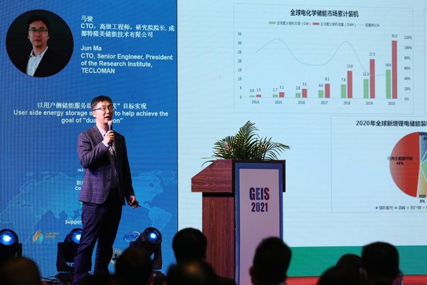 在儲(chǔ)能商業(yè)模式與應(yīng)用的分論壇上,特隆美儲(chǔ)能副總裁(研發(fā)中心)馬駿在現(xiàn)場(chǎng)分享了《以用戶側(cè)儲(chǔ)能服務(wù)助力“雙碳”目標(biāo)實(shí)現(xiàn)》的主題演講。