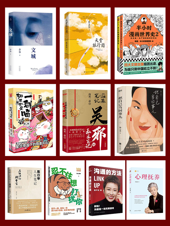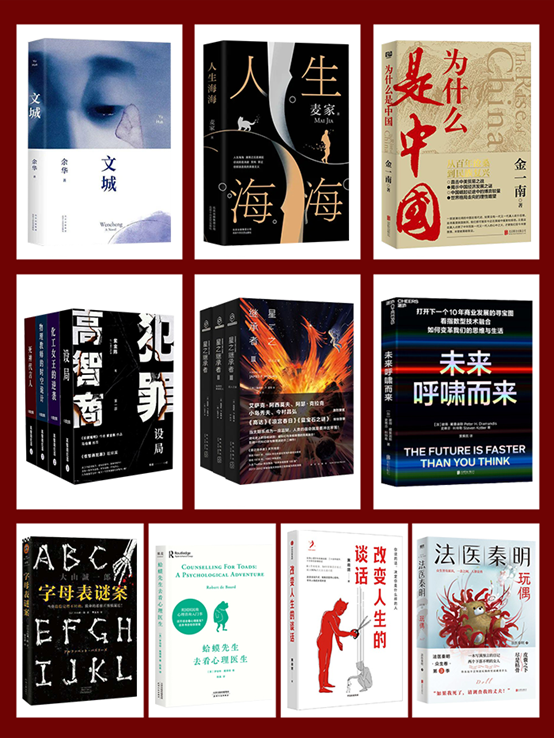 其中,余華重磅新作《文城》、茅獎(jiǎng)得主麥家經(jīng)典著作《人生海海》、講述中國(guó)百年滄桑巨變的《為什么是中國(guó)》、英國(guó)經(jīng)典心理咨詢?nèi)腴T作品《蛤蟆先生去看心理醫(yī)生》、馬伯庸、雷米、鸚鵡史航集體推薦的懸疑推理大神紫金陳的《高智商犯罪》系列,以及《改變?nèi)松恼勗挕贰斗ㄡt(yī)秦明:玩偶》《字母表謎案》《星之繼承者》《未來(lái)呼嘯而來(lái)》等優(yōu)質(zhì)作品集體上榜。