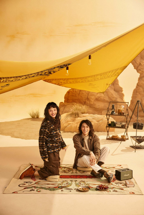 帳篷腰部靈動(dòng)繁復(fù)的花紋或飛騰、或遨游、或嬉戲、或靈動(dòng)的姿態(tài)盡展眼前。戶外折疊椅則采用了更為跳脫的方式,將現(xiàn)代朋克風(fēng)融入到敦煌飛天元素之中,展現(xiàn)飛天婀娜多姿形態(tài)的同時(shí),也讓現(xiàn)代元素與古代元素完美交融,碰撞出新的火花。