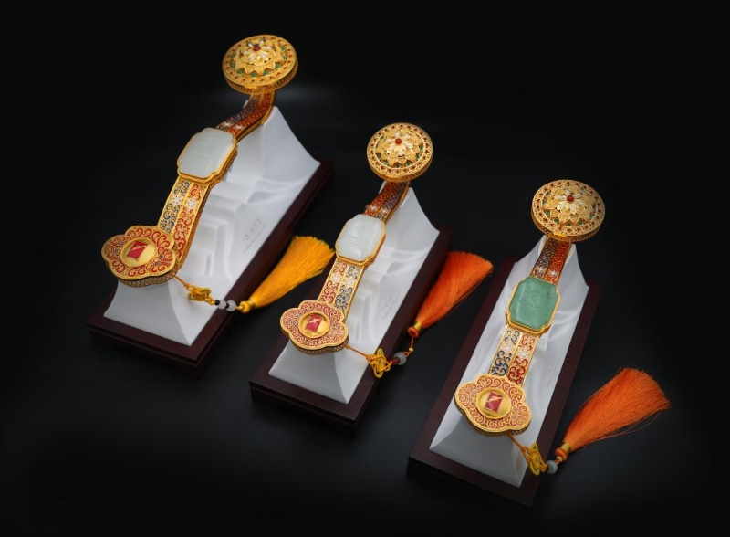 據(jù)主創(chuàng)人員中國(guó)工藝美術(shù)大師王樹文先生介紹,花絲鑲嵌又叫細(xì)金工藝,是一門傳承久遠(yuǎn)的中國(guó)傳統(tǒng)手工技藝,是“花絲”和“鑲嵌”兩種制作技藝的結(jié)合,2008年6月被列入國(guó)家級(jí)非物質(zhì)文化遺產(chǎn)名錄?!岸瑠W冰雪花絲如意”頭部采用花絲鑲嵌技藝中的掐、填、攢、焊、編等工序和鑲嵌技藝中的多道工序制作完成,既突顯了非遺技藝的無窮魅力,又表現(xiàn)了中國(guó)如意文化的內(nèi)涵。