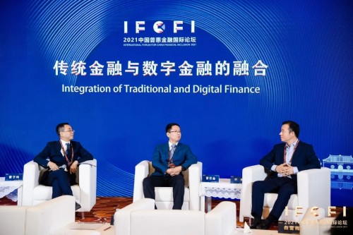 在IFCFI主題論壇一:傳統(tǒng)金融與數(shù)字金融的融合環(huán)節(jié)中,特邀中國人民銀行金融消費權(quán)益保護局局長、中國人民銀行上海總部黨委委員余文建,滴灌通創(chuàng)始人、主席李小加進行主旨演講。上海新金融研究院副院長、上海交通大學(xué)中國金融研究院副院長劉曉春,臺州銀行副董事長、行長黃軍民,CAFI聯(lián)席院長趙錫軍,江蘇銀承董事長兼CEO曹石金、58數(shù)科CEO葉偉進行嘉賓對話,共同探討傳統(tǒng)金融與數(shù)字金融的合作、碰撞及未來的共同使命。