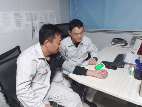 項目部黨員考慮到入冬以來天氣寒冷,職工身體也容易出現(xiàn)異常,便自發(fā)學起了血壓、血液等專業(yè)知識,發(fā)起了此次服務活動?;顒影l(fā)起后,黨員職工主動帶隊,前往各工區(qū)進行測量,共為50余名一線職工帶來了暖心的服務,解答了相關疑惑,獲得了一致好評。