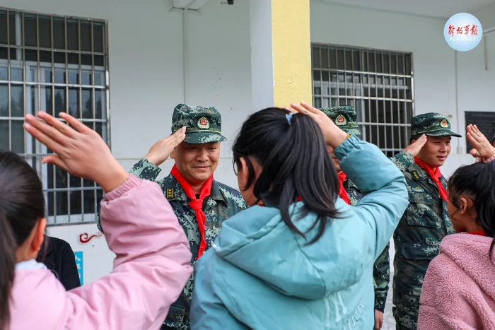 學(xué)生代表為官兵系戴紅領(lǐng)巾
