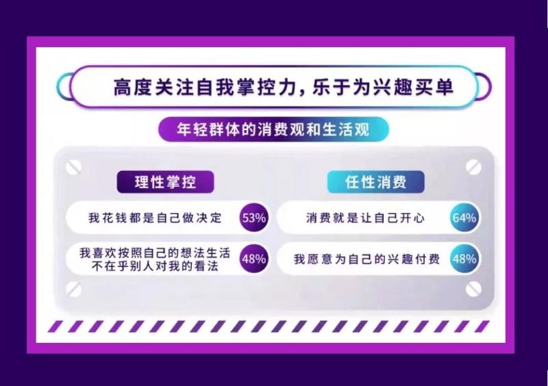 來(lái)自巨量算數(shù)發(fā)布的《2021年潮購(gòu)人群洞察報(bào)告》顯示,53%的年輕消費(fèi)群體,對(duì)花錢更有自我掌控力。同時(shí),有超過(guò)48%的年輕消費(fèi)者認(rèn)為愿意為自己的興趣買單,遵循自己的想法去生活。