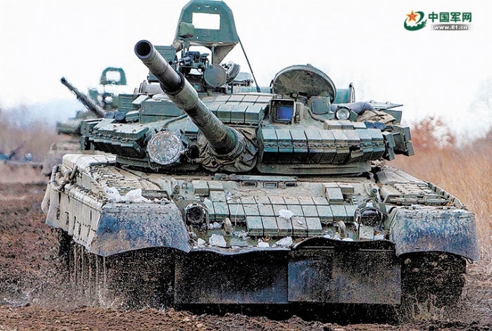 可發(fā)射AT-8“鳴禽”反坦克導(dǎo)彈的俄羅斯T-80主戰(zhàn)坦克。